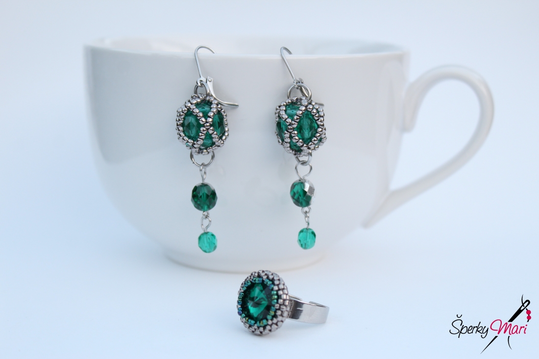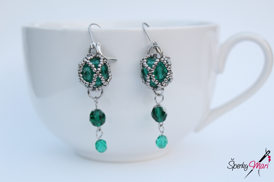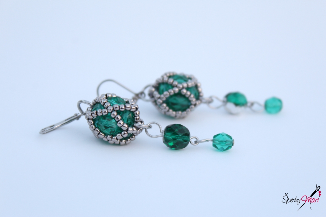 visacie náušnice zo sklenených korálikov 6 a 4 mm a japonských korálikov Toho, komponenty sú z chirurgickej ocele