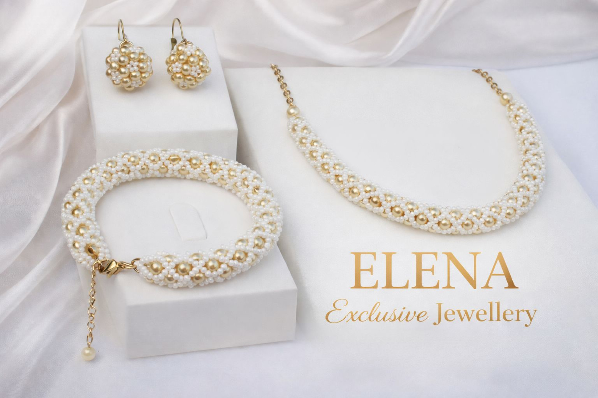 Ručne šitá súprava náhrdelník, náramok, náušnice.
