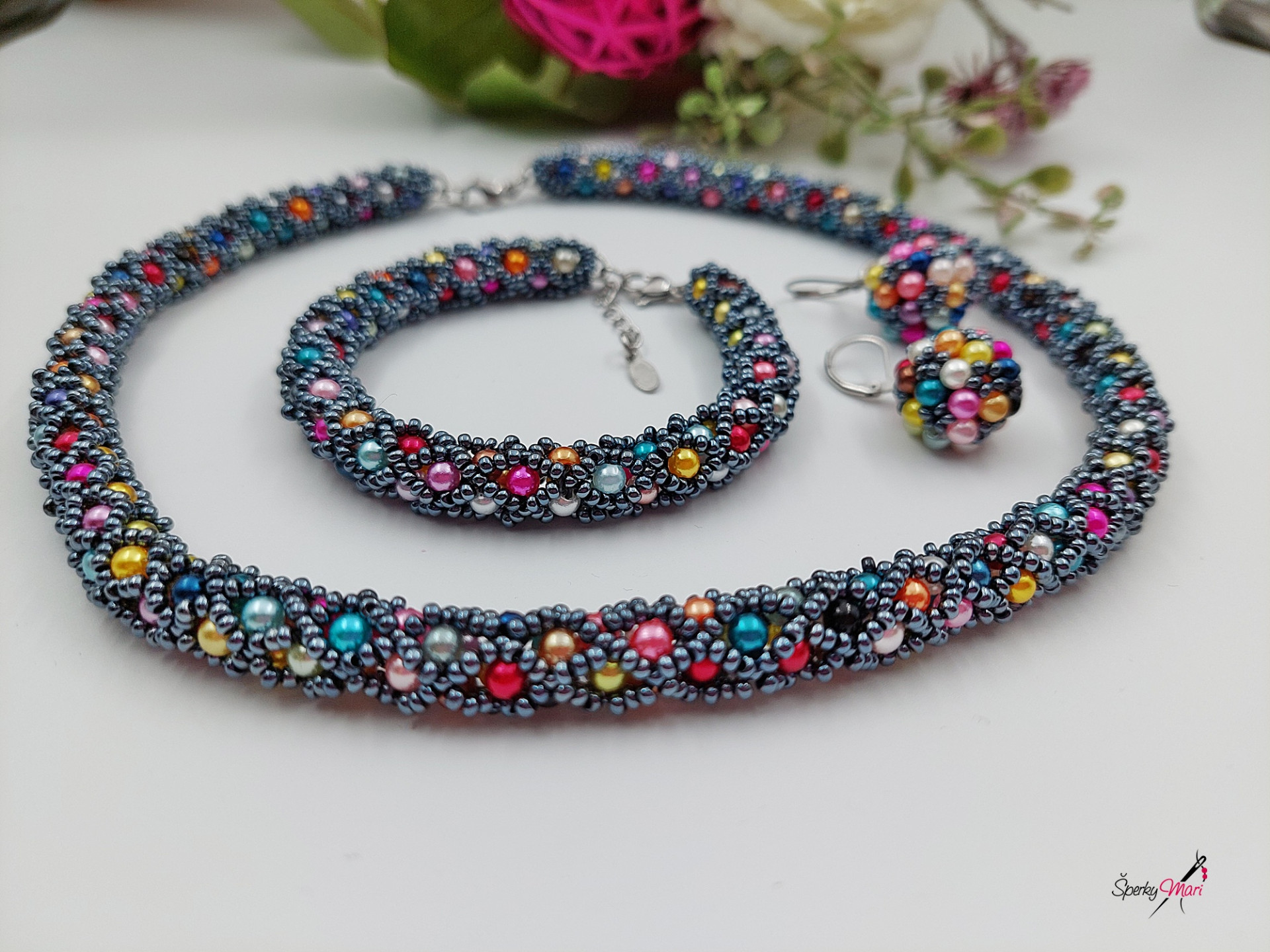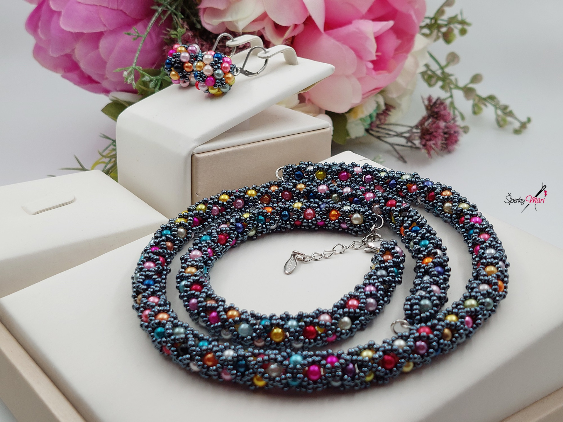 Elegantný a neprehliadnutelný náhrdelník je vytvorený technikou ""potrubná pošta"". Použila som perlicky a koráliky Preciosa.