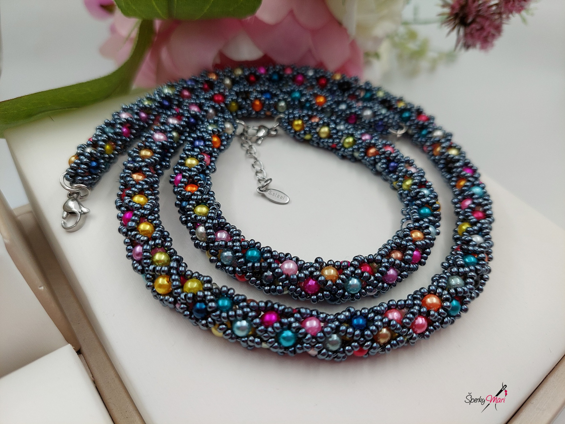 Náhrdelník sa zapína na karabínku, komponenty sú z chirurgickej ocele. Ak si želáte náhrdelník navlecený na šróbovacom lanku, ktoré je dlhé 44,50cm cena bude o 1,50€ nižšia.