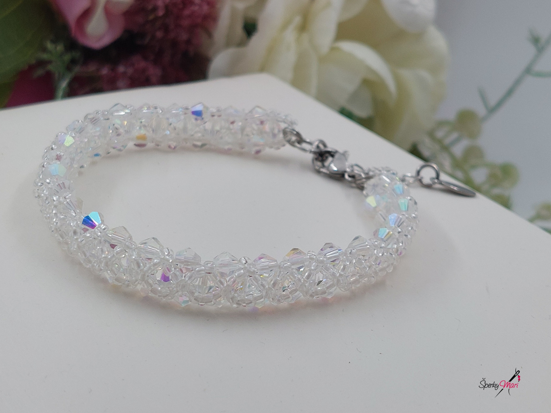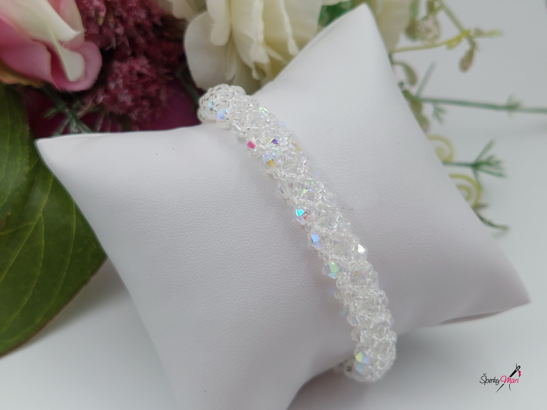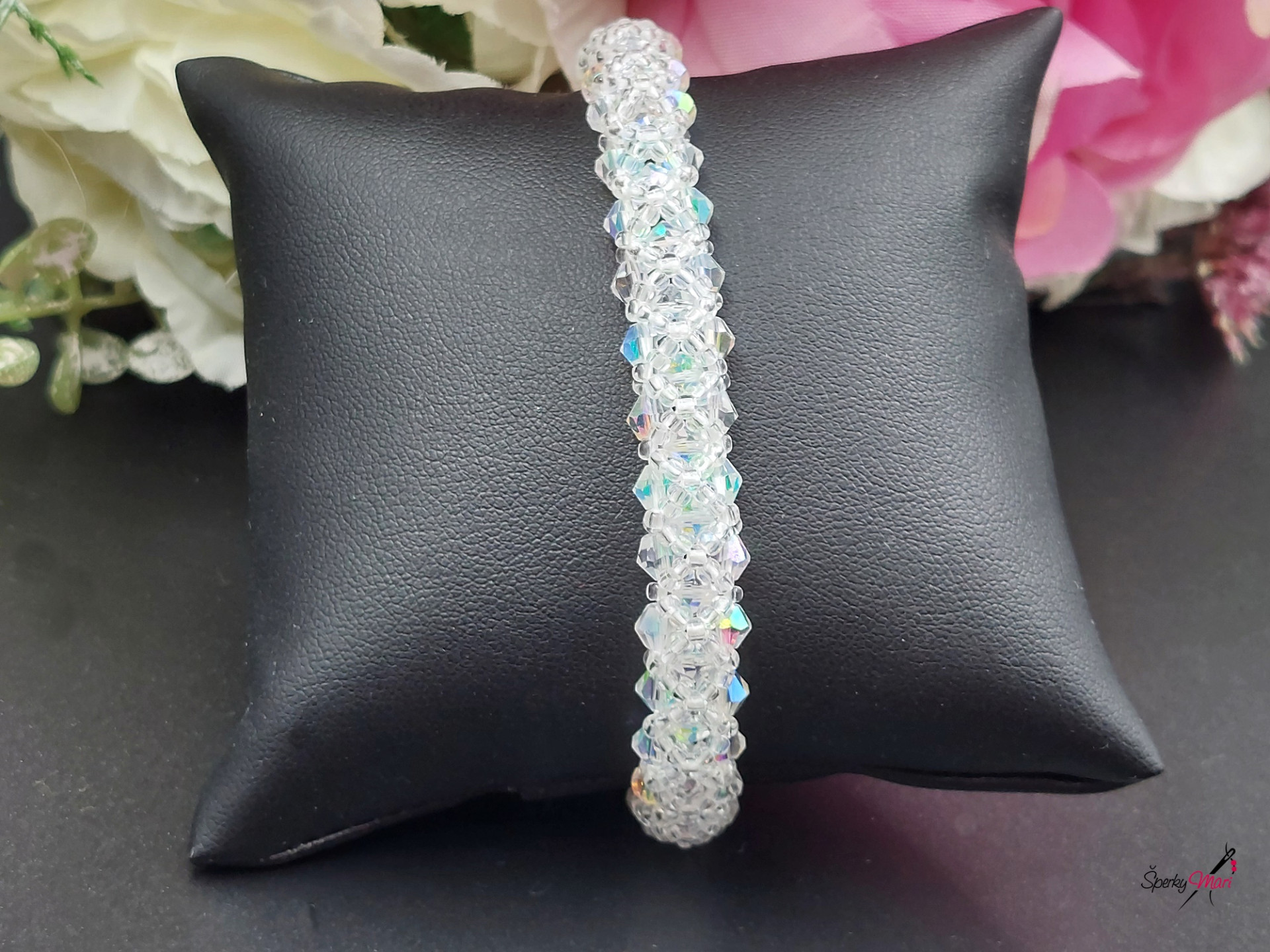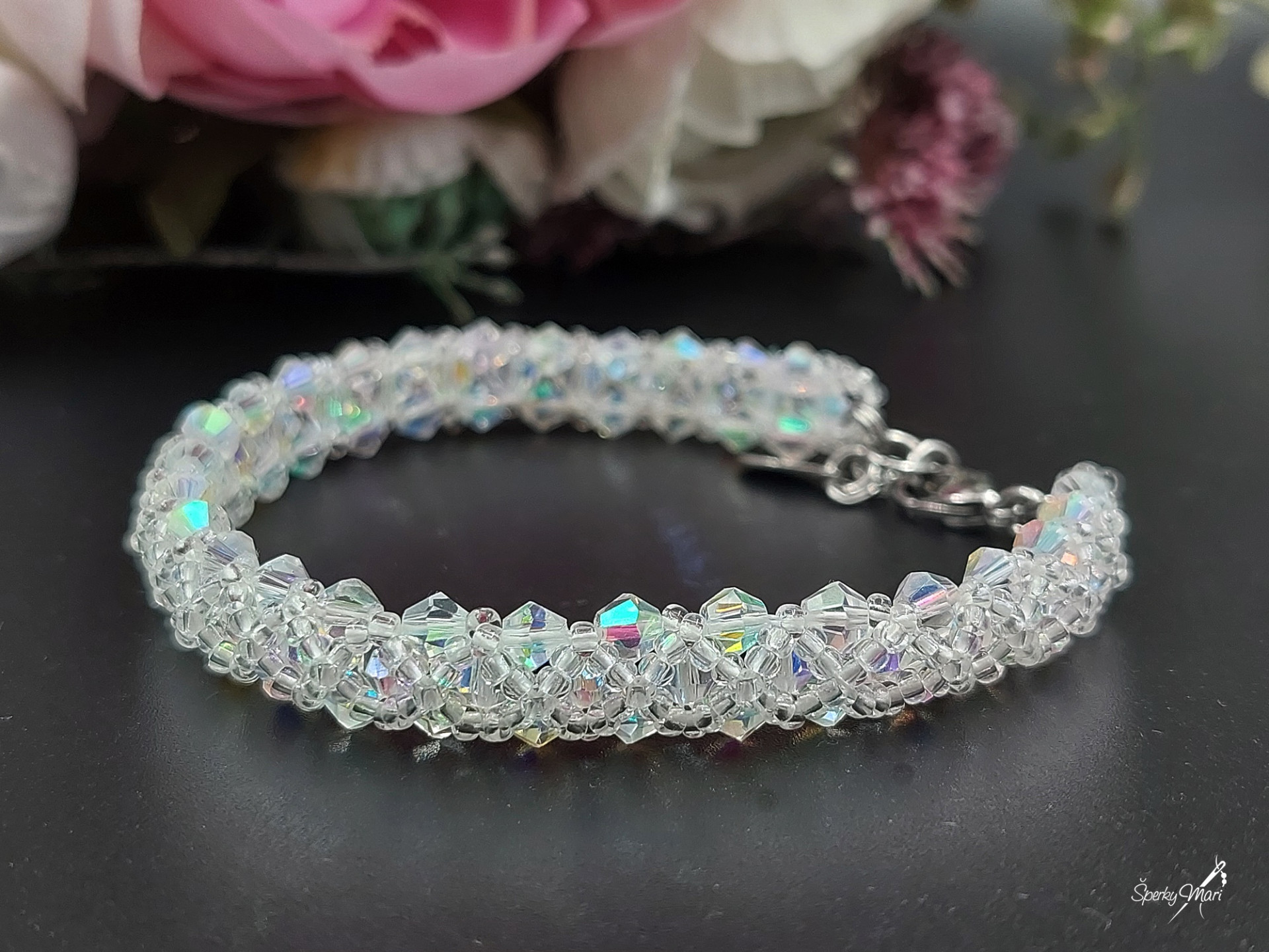 Náramok som ušila zo sklenených brúsených korálikov a korálikov českého výrobcu Preciosa, tento náramok sa môže nosit obojstranne