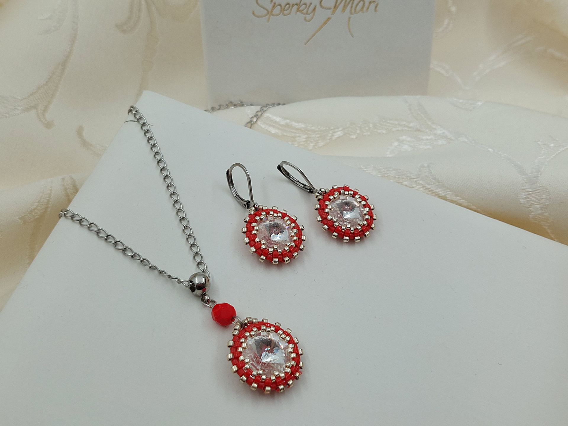 Náhrdelník - Swarovski rivoli som obšila korálikmi Toho Treasure a sklenenými drobnými japonsnkými korálikmi
